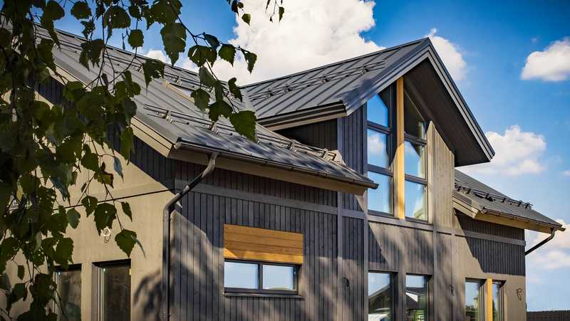 Кликфальц это также и стильные и современные фасадные панели для зданий в стиле Hi-tech, Минимализм, Скандинавия. Широкий выбор покрытий и цветовых решений позволит реализовать самые смелые дизайнерские решения.