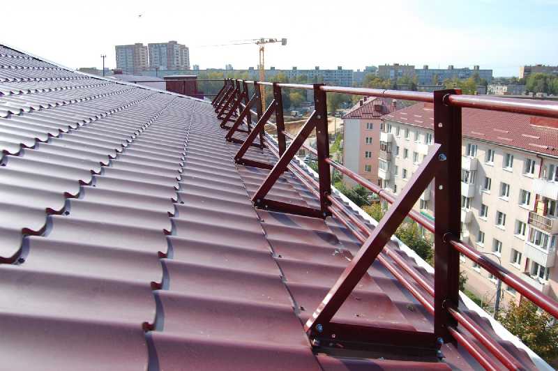 Кровельное ограждение — это основной элемент защиты жизни и здоровья людей, находящихся на кровле. Кровельное ограждение обеспечивает безопасность перемещения по кровле при проведении профилактических работ, обслуживании и ремонте. Кровельное ограждение может быть дополнено трубками снегозадержателя, решая одновременно две задачи.
