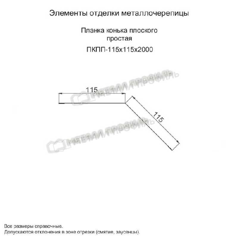 Планка конька плоского простая 115х115х2000 (ПЭ-01-6005-0.45)