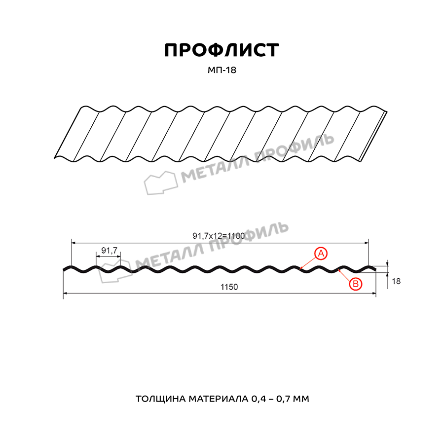 Профиль МП-18 имеет толщину 0,45 мм, что обеспечивает прочность и долговечность конструкции.