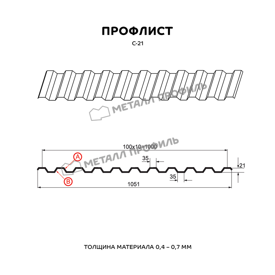 Профиль С-21 обладает высокой прочностью и устойчивостью к воздействию различных погодных условий, что делает его идеальным выбором для крыш, фасадов и заборов.
