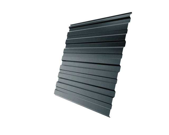 Профнастил С10A 0,4 PE с пленкой RAL 7016 антрацитово-серый - это качественный и прочный материал, который используется для облицовки и защиты различных поверхностей. Профнастил изготовлен из стального листа толщиной 0,4 мм, что обеспечивает ему высокую прочность и долговечность. Пленка RAL 7016 антрацитово-серого цвета придает материалу эстетичный и современный вид, а также защищает его от воздействия внешних факторов, таких как ультрафиолетовые лучи, влага и коррозия. Профнастил С10A 0,4 PE с пленкой RAL 7016 антрацитово-серый идеально подходит для использования на крышах, фасадах зданий, заборах и других конструкциях, где требуется надежная защита и привлекательный внешний вид.