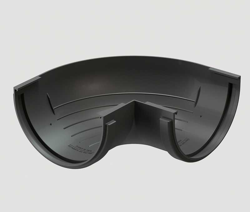 Угловые элементы устанавливаются на внешних углах кровли и предназначены для соединения желобов.