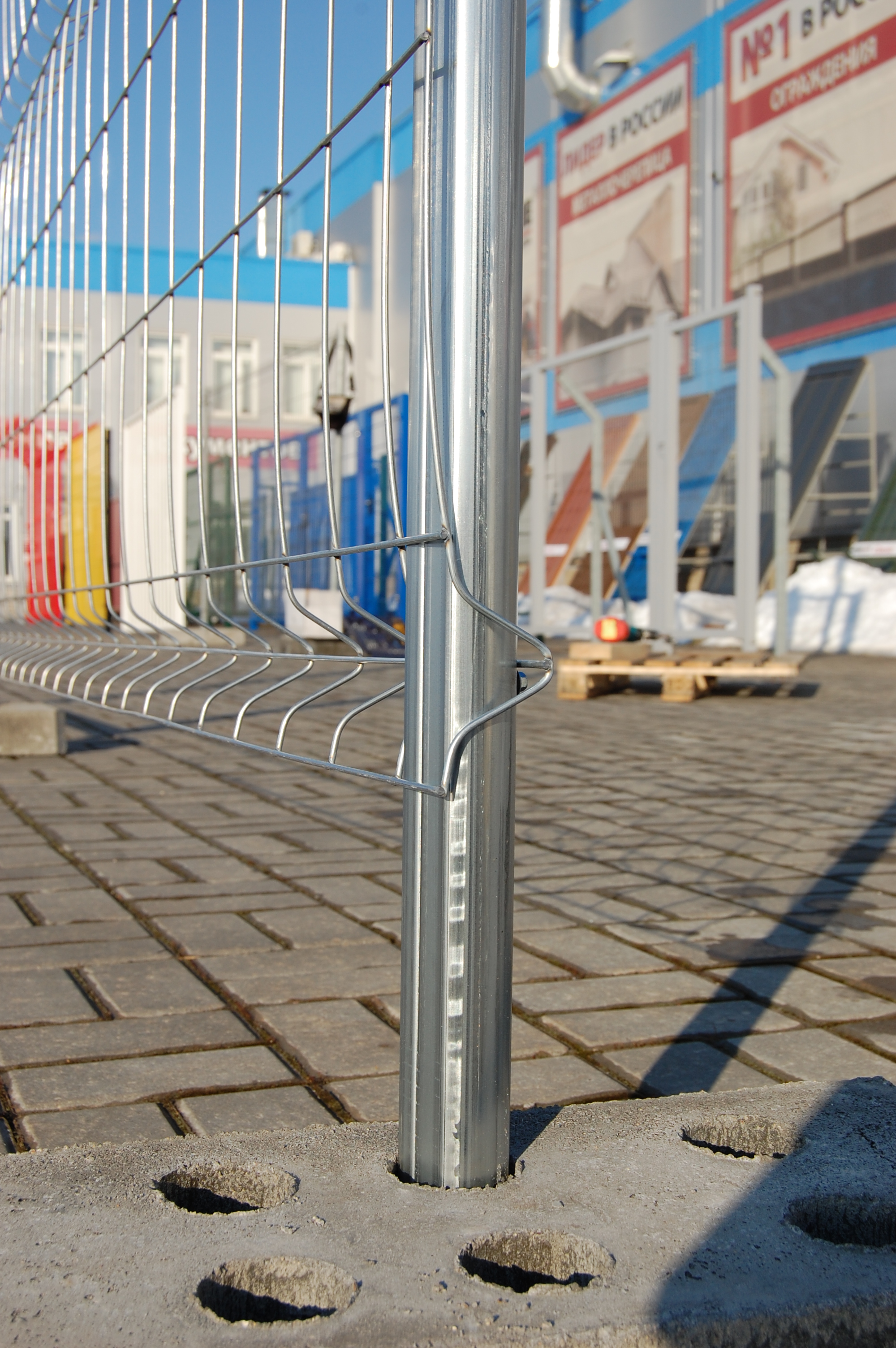 Основание бетонное обеспечивает высокую устойчивость конструкции временного ограждения.